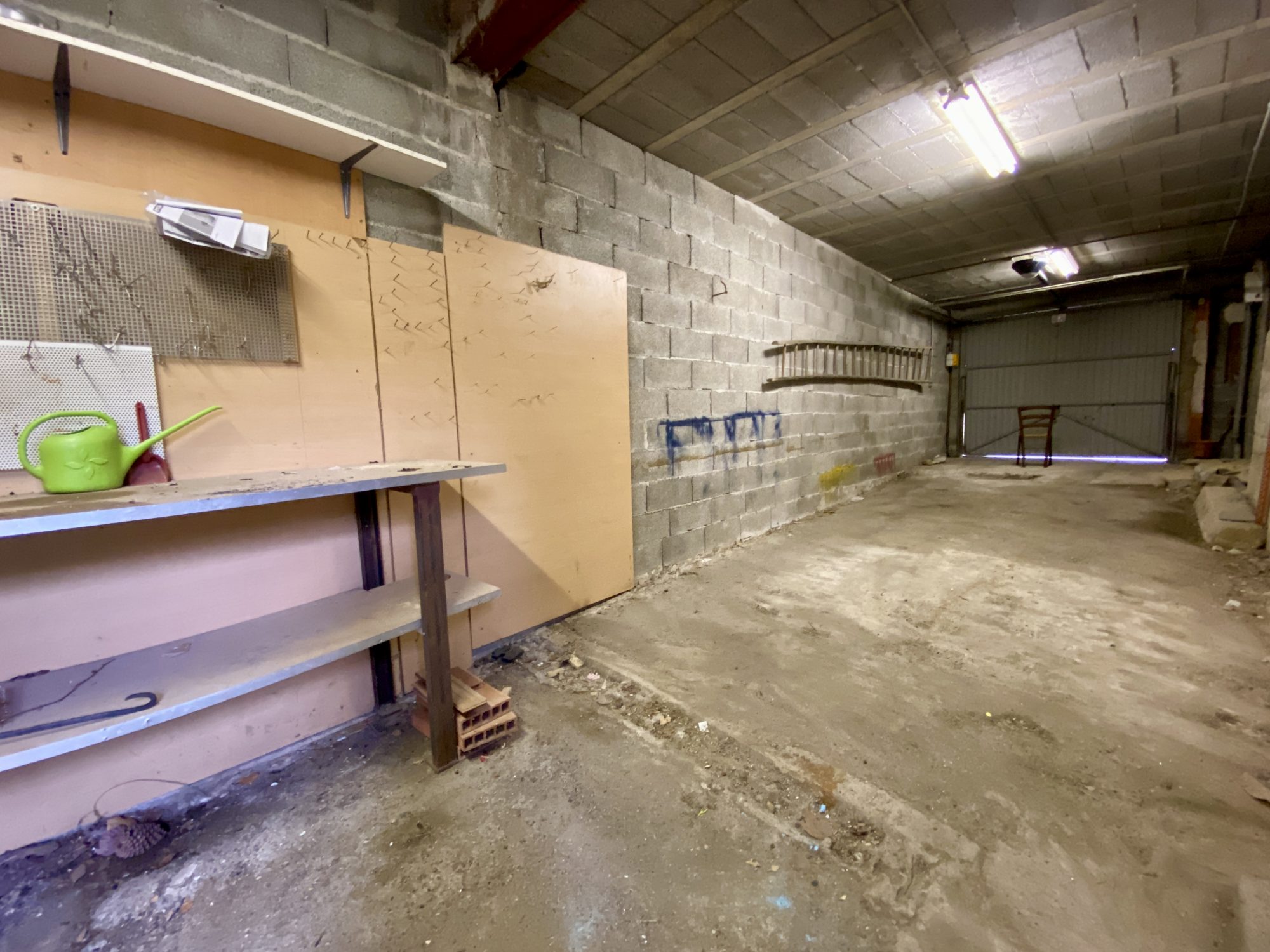 Au rez-de chaussée: grand atelier/garage/cave